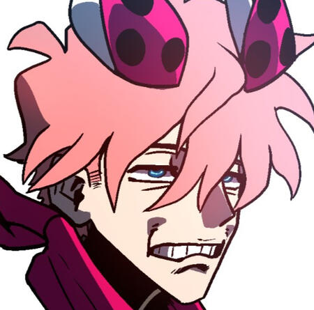 A shot of the character starting from the shoulders up.